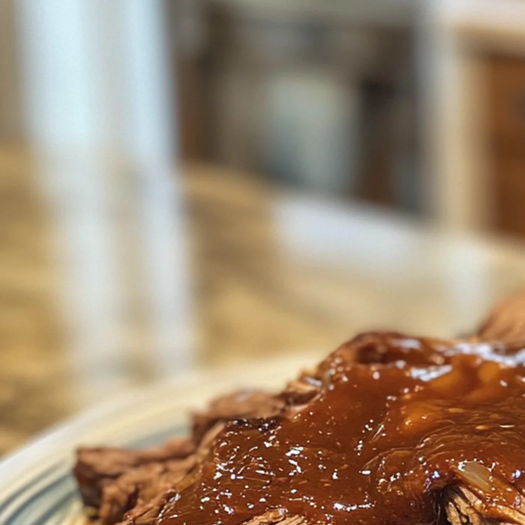 A tender and flavorful BBQ beef dish cooked slowly in a crockpot, perfect for sandwiches or served with sides.