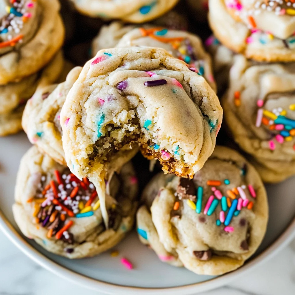 - 1 cup sprinkles (rainbow) – These colorful bits bring festive flair, making your birthday cake cookies extra special!