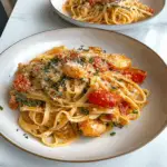 In a large pot of salted boiling water, cook your pasta according to package instructions until al dente. Reserve about a cup of pasta water before draining—it’s liquid gold!