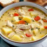 Warm and nourishing, this Comforting Chicken Soup with Potatoes is the perfect remedy for chilly days. Packed with tender chicken, creamy potatoes, and vibrant vegetables simmered in a flavorful broth, this soup is perfect for chilly evenings or any time you need a comforting meal. Easy to prepare and customizable, it’s bound to become a family favorite that brings everyone together around the table.