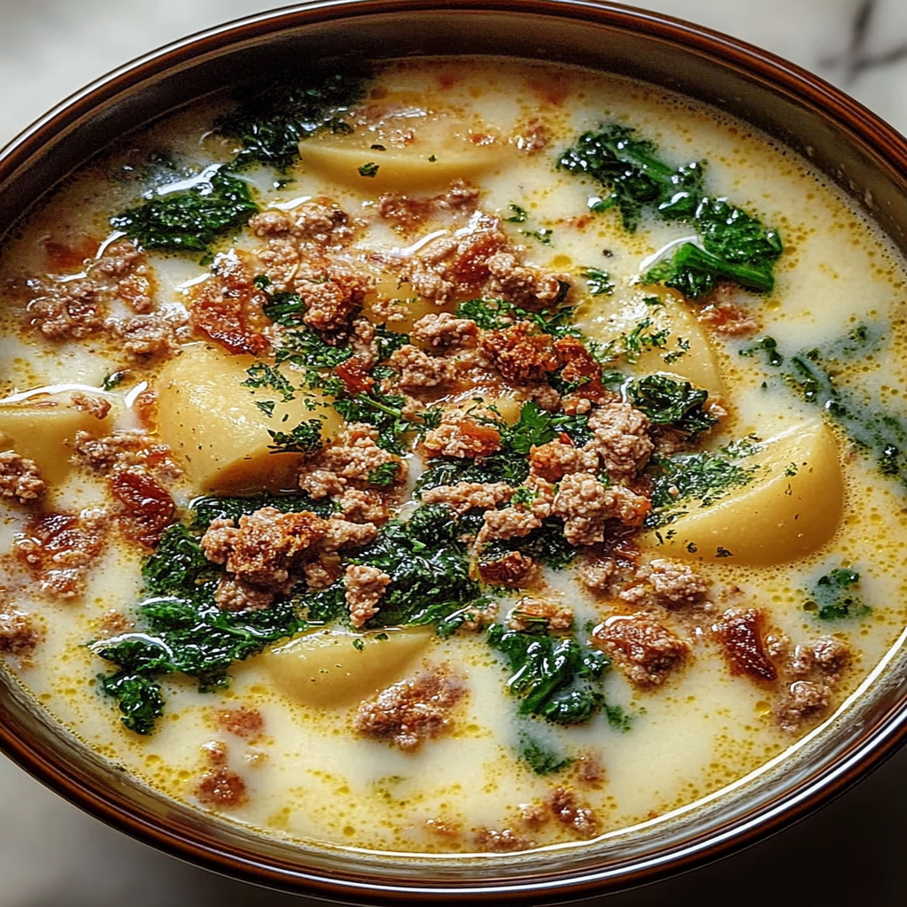 One-Pot Zuppa Toscana Soup is a hearty and delicious Italian-inspired dish that combines flavorful ingredients like sausage, kale, potatoes, and cream. This comforting soup is cooked in one pot, making it a convenient option for busy weeknights. perfect crunchy croutons The combination of savory sausage and fresh vegetables creates a satisfying meal that warms your soul. With simple preparation and minimal cleanup, this recipe is perfect for families or anyone looking to enjoy a delicious bowl of soup.