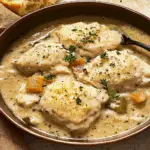 Chicken and dumplings with biscuits is the ultimate comfort food, perfect for chilly evenings. This hearty dish features tender chicken simmered in a rich, creamy broth, topped with fluffy dumplings that soak up all the flavors. Ideal for family gatherings or cozy nights in, it’s a meal that warms both the heart and soul. With minimal prep and a short cooking time, you can enjoy this delightful recipe any night of the week!