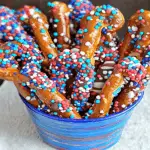 I still chuckle when I think about the first time I made these Fourth of July Chocolate Pretzels. My dog decided he wanted some too and jumped onto the table, sending a shower of sprinkles everywhere—definitely a memorable moment!
