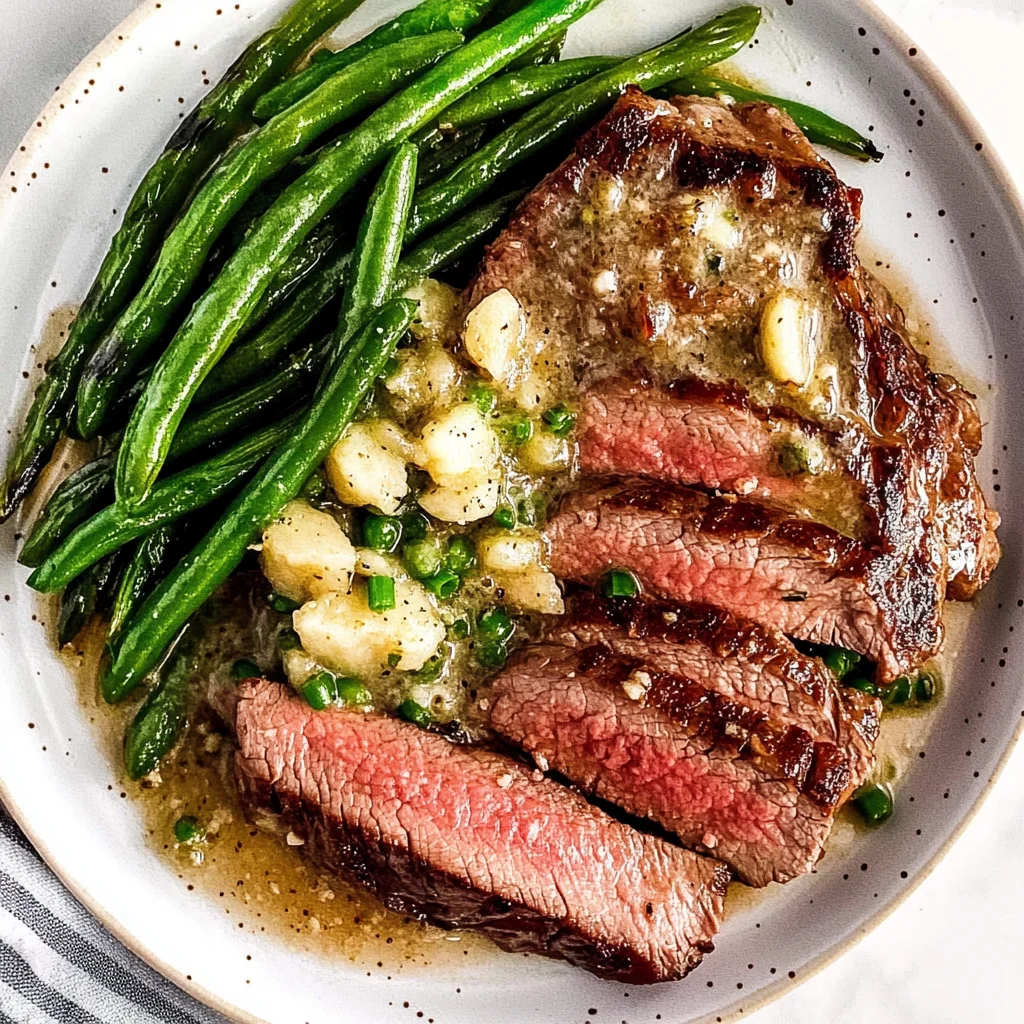Slice the rested steak against the grain, plate alongside those gorgeous green beans, and drizzle any remaining garlic butter from the skillet on top.