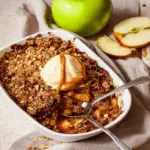 Grease an 8×8-inch baking dish with nonstick spray. Layer your apple mixture evenly at the bottom before sprinkling the oat topping generously over it. Feel free to add more if you’re feeling extra generous!