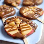 Drizzle the melted caramel over the chocolate layer. Now comes the fun part: scatter those apple slices all over! You can go wild here; just imagine each piece as a little treasure waiting to be discovered.