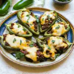 Cheese and Chorizo Stuffed Jalapeños are spicy jalapeño peppers filled with a savory mixture of cheese and chorizo sausage. This appetizer is popular for its perfect balance of heat and flavor. The creamy cheese complements the smoky chorizo, creating a delicious bite-sized treat that’s ideal for parties or game day. You can customize the filling by using different types of cheese or adding spices to enhance the flavor.