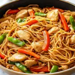 Chicken Lo Mein is a popular Chinese dish that features tender chicken stir-fried with soft egg noodles and colorful vegetables. The dish is typically flavored with soy sauce, garlic, and ginger, creating a savory and satisfying meal. It’s not only delicious but also versatile, allowing for various vegetables and protein options. You can enjoy it as a comforting weeknight dinner or serve it at gatherings.