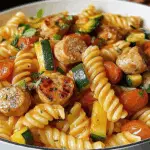 Chicken Sausages with Zucchini, Tomatoes, and Pasta is a vibrant one-pot meal that combines juicy chicken sausages with fresh zucchini and sweet cherry tomatoes tossed in perfectly cooked pasta. Ready in under 30 minutes, this dish bursts with flavor and offers a satisfying comfort food experience without the fuss. Perfect for busy weeknights, it’s not only delicious but also visually appealing, making dinner feel special.