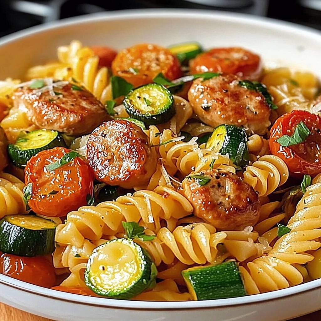 Chicken Sausages with Zucchini, Tomatoes, and Pasta
