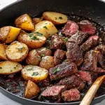 Garlic Butter Steak and Potatoes Skillet is a mouthwatering, one-pan dish that marries juicy steak with tender, golden baby potatoes in a luscious garlic butter sauce. Perfect for impressing guests or enjoying a cozy dinner at home, this recipe delivers rich flavors and comfort in just 30-40 minutes. Simple to prepare yet elegant enough for any occasion, it’s sure to become a family favorite.