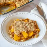 Baking Mango Crumble typically takes about 30 to 35 minutes at 350°F (175°C). You’ll know it’s ready when the top is golden brown and the mango filling bubbles slightly. perfect side for sweet desserts Allow it to cool for a few minutes before serving. This dessert is perfect for sharing with family and friends after a meal or as a sweet treat any time of day.