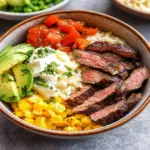 You can customize your Mouthwatering Steak Bowls in countless ways! For a Tex-Mex twist, use black beans, corn, and avocado with a sprinkle of feta cheese. Alternatively, try an Asian-inspired bowl with sesame seeds, edamame, and a drizzle of soy sauce. spicy burrito alternative Vegetarian options can include marinated tofu or grilled portobello mushrooms instead of steak while keeping the same fresh veggies and grains. For more inspiration, check out this Mushroom Swiss Cheese Meatloaf recipe.