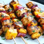 In summary, Pineapple Chicken Kebabs – Sweet & Savory offer a delightful blend of flavors that is perfect for any occasion. By marinating chicken pieces and pairing them with fresh pineapple and colorful vegetables, you create a dish that pleases both adults and kids alike. Chipotle ranch chicken burrito recipe Experimenting with different marinades can elevate this recipe even further. Enjoy these kebabs grilled at your next gathering; they are sure to impress your guests!