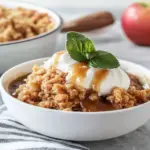 Once it’s cooked through and bubbly on top, scoop generous portions into bowls. Top with vanilla ice cream or whipped cream for extra indulgence.