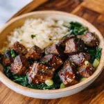 Steak bites with miso ginger dressing are tender pieces of marinated steak, often grilled or pan-seared, served with a flavorful dressing made from miso paste, ginger, and other ingredients. This dish combines the rich flavors of beef with the umami taste of miso, creating a deliciously unique appetizer or main dish. homemade croutons for salads The dressing not only enhances the steak’s flavor but also adds a refreshing zing, making it a perfect complement for gatherings or family dinners.