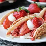 Indulge in the delightful fusion of flavors with Strawberry Crunch Cheesecake Tacos! These mini tacos feature a creamy cheesecake filling made with fresh strawberries, all nestled in crunchy taco shells and topped with a sweet crumble. Perfect for summer gatherings or cozy family nights, these treats are sure to impress your guests and satisfy your sweet cravings.
