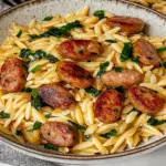 - This One-Pot Garlic Butter Sausage and Orzo Delight is quick to make, perfect for busy evenings without compromising on flavor.