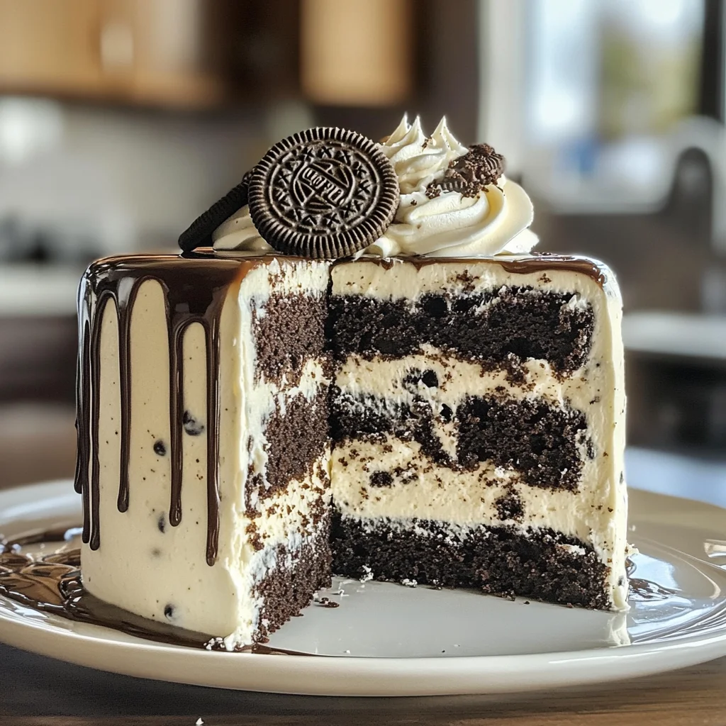 This Oreo cake isn’t just a dessert; it’s a celebration waiting to happen—perfect for birthdays, cozy gatherings, or any occasion that calls for a little indulgence. As you savor each mouthful, you’ll find yourself reminiscing about simpler times, perhaps recalling childhood adventures spent in search of the ultimate cookie treat. Get ready for an unforgettable flavor experience that promises to make any moment feel special!