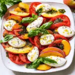 When selecting peaches for your Peach Caprese Salad, look for ones that are slightly soft to the touch but not mushy. The color should be vibrant, and they should have a sweet aroma. Avoid any that have blemishes or wrinkles, as these may indicate overripeness. If you can’t find ripe peaches, you can leave them at room temperature for a few days until they soften.