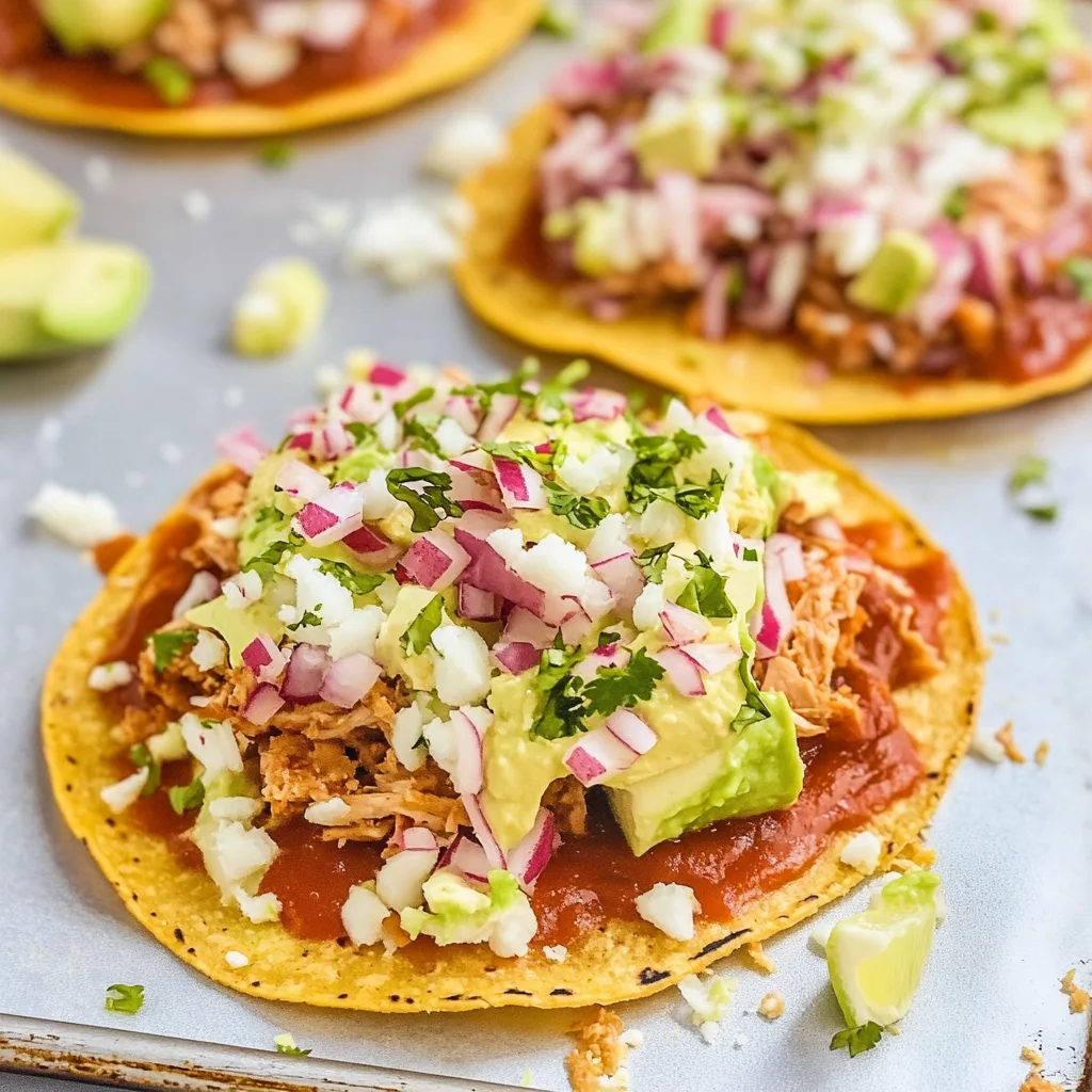 Now, let me take you back to those lazy summer afternoons spent at my grandmother’s kitchen table, where we’d pile high our tostadas with everything from fresh pico de gallo to tangy cheese. It was a celebration of simple joys—perfect for family gatherings or those spontaneous snack attacks. Trust me, once you dive into this flavor fiesta, you’ll wonder why you ever settled for anything less!