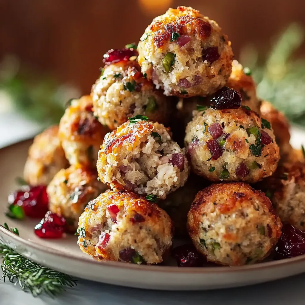 - Meat Lovers: Blend in cooked sausage or bacon pieces for a hearty version. The savory richness adds depth, making these stuffing balls irresistible at any gathering.