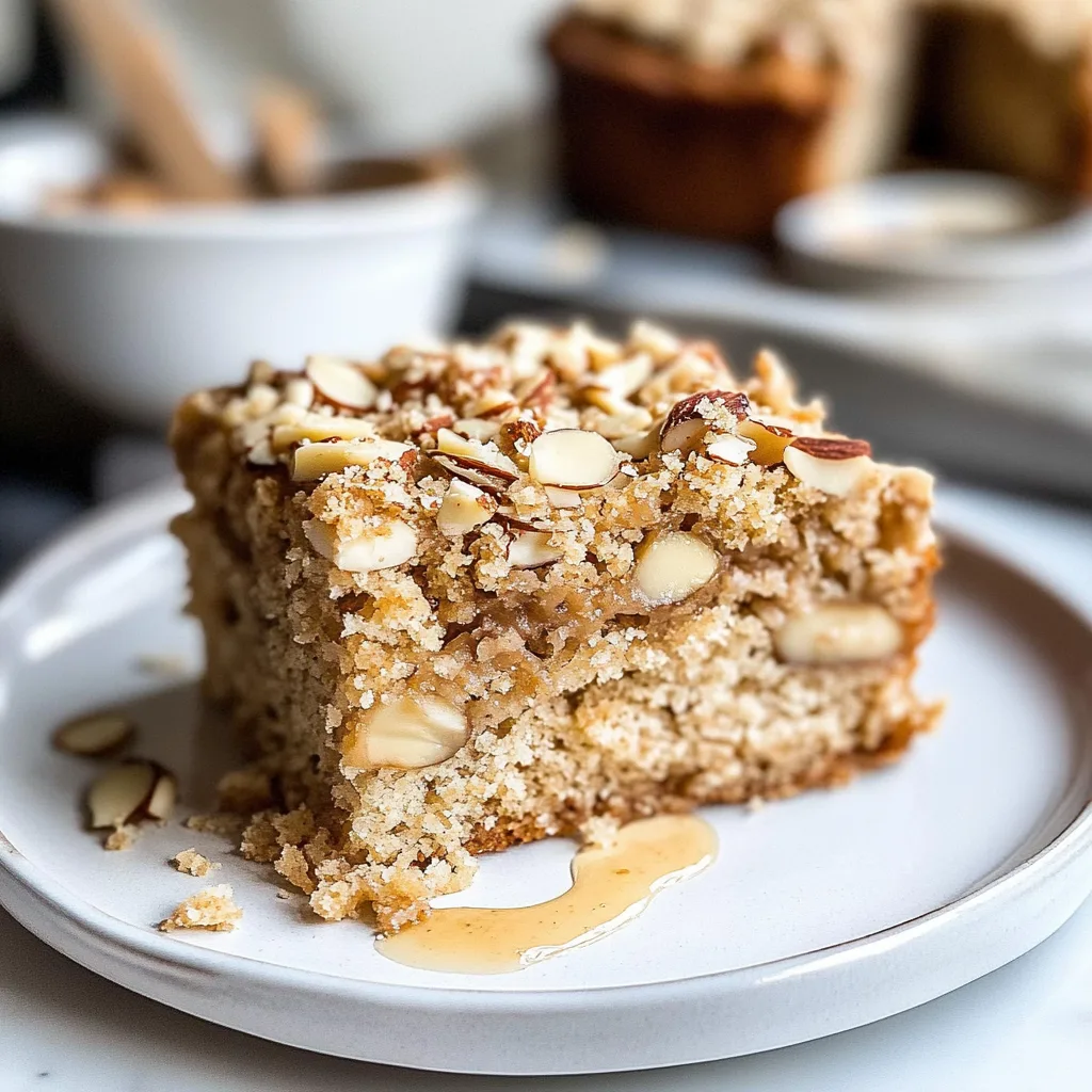 This Viral Almond Crumb Coffee Cake (Bakery Style) is not only a delightful treat but also perfect for meal prep! You can prepare specific components in advance to save time on busy mornings. For instance, you can measure out the 2 cups of all-purpose flour, 1 cup of granulated sugar, and other dry ingredients ahead of time, and even cream together the softened 1/2 cup of unsalted butter with sugar up to 24 hours in advance. The almond crumb topping can be combined and stored in the fridge for up to 3 days—just mix together the 1 cup of almond flour, 1/2 cup brown sugar, melted butter, cinnamon, and sliced almonds until crumbly. When you’re ready to serve, simply bake the cake as directed: pour the prepared batter into your greased pan, sprinkle with the crumb topping, and bake for 30-40 minutes until golden brown. Enjoy the convenience of this make-ahead recipe while treating yourself to a warm slice of joy!