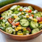 In summary, Zesty Mexican Cucumber Salad is an easy-to-make dish that brings freshness to your table. With its simple ingredients and vibrant flavors, this salad is sure to become a favorite at gatherings or weeknight dinners. Its versatility allows it to pair well with various main courses while being quick to prepare. Enjoy this creamy and craveable salad today!